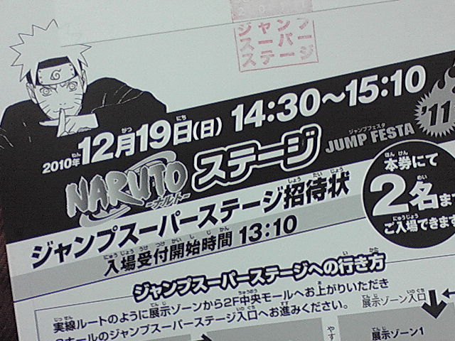 さてさて、ヲタ小旅行最終日、ジャンフェス2日目のNARUTOステージレポでっす。